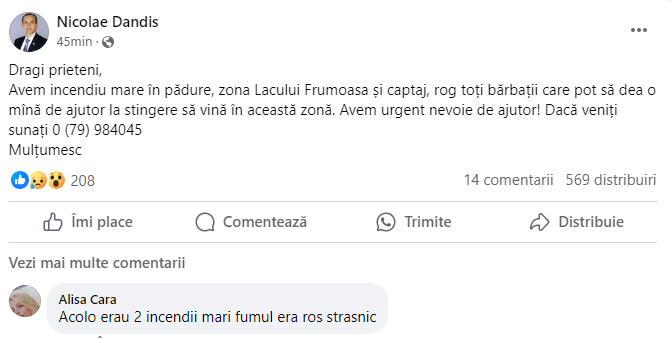 IGSU reitereayă îndemnul către populație să fie foarte prudentă și să respecte cu strictețe regulile antiincendiu, în special pe timp de caniculă, pentru evitarea arderea pădurilor și vegetației uscate.