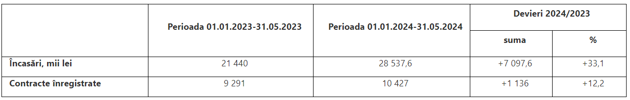 În urma acțiunilor întreprinse în cinci luni ale acestui an, au fost înregistrate 10.427 contracte de dare în locațiune a bunurilor imobile sau cu 12,2 la sută mai mult față de perioada similară a anului 2023.