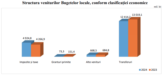 Potrivit datelor Ministerului Finanțelor, veniturile proprii ale primăriilor au fost de 5 miliarde 666,6 milioane de lei, în creștere cu 563,5 milioane sau cu 11 la sută comparativ cu aceeași perioadă a anului precedent. În același timp, s-au micșorat cu aproape 605 milioane de lei sau cu 4,6 la sută transferurile de la bugetul de stat, care au ajuns la 12 miliarde 414,2 milioane de lei.