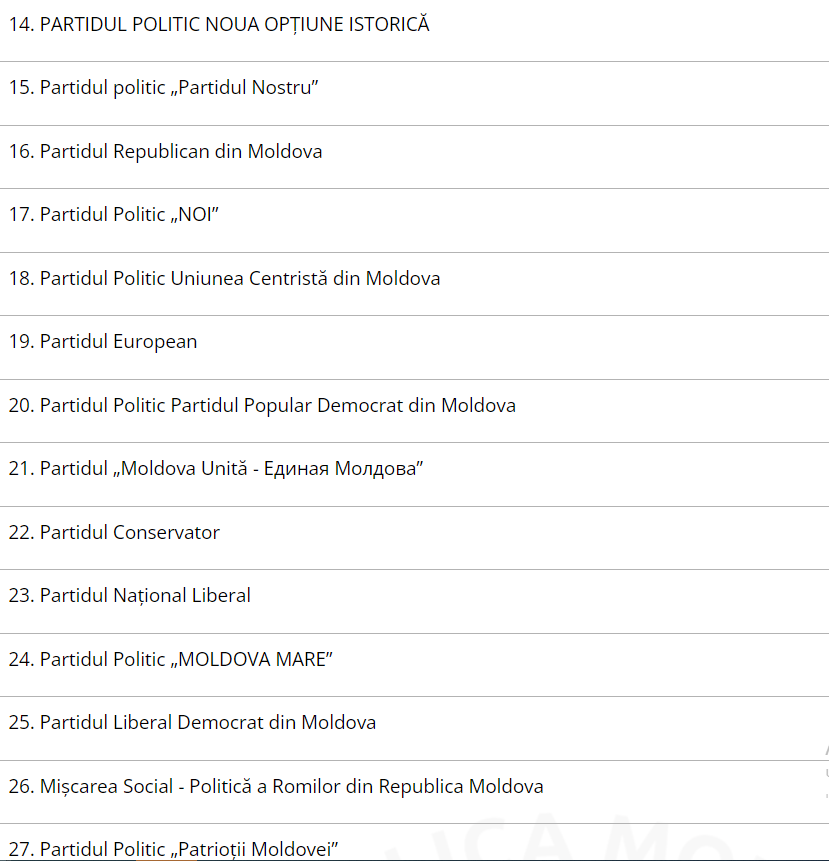 Potrivit CEC, dreptul de a desemna candidați pentru alegeri și participanți la referendum îl au partidele înregistrate la Agenția Servicii Publice, până la stabilirea datei alegerilor.