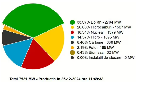 Potrivit publicației economica.net, în condiții de vânt, turbinele eoliene livrează o putere de aproape 2.600-2.700 megawați, fiind de departe prima sursă de generare. România exportă energie la o putere de 2.000 megawați, inclusiv în condițiile în care grupurile hidro și mai ales cele pe cărbune funcționează la o încărcare destul de redusă.