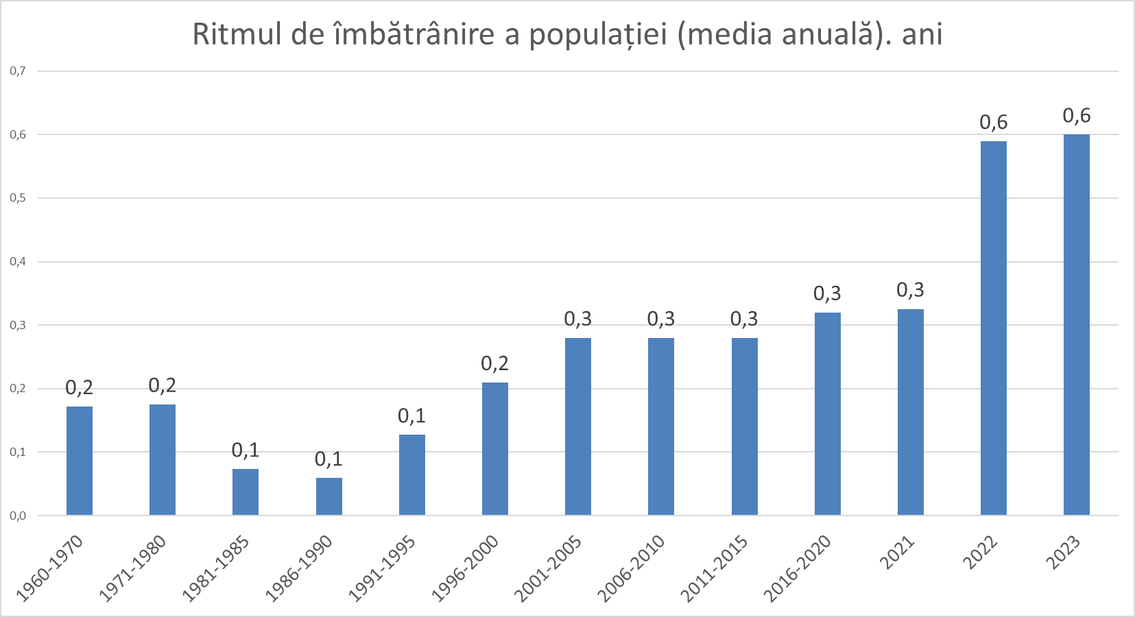 El a precizat că, în ceilalți ani, populația țării îmbătrânea, în medie, cu 0,1-0,2 ani, însă din 2000 acest indicator a crescut până la 0,3 ani. În 2022-2023, el a săltat până la cote nemaiîntâlnite în istoria noastră, de 2-3 ori mai mult decât media tradițională, ridicându-se până la 0,6 ani, subliniază Ioniță.
