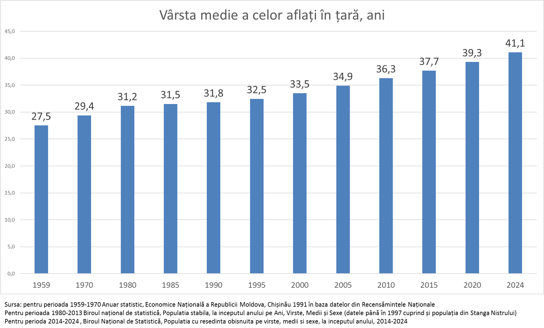 Acum, potrivit economistului, vârsta medie a cetățenilor aflați în țară este de 41,5 ani, cea mai mare din istorie. De la declararea independenței, ea a crescut cu peste 9 ani, remarcă Ioniță.