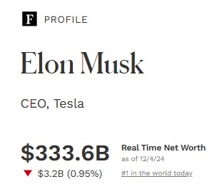 Chiar și fără această miză, Elon Musk rămâne cel mai bogat om din lume. Averea sa continuă să crească inclusiv datorită proiectelor de succes, cum ar fi SpaceX. Potrivit Forbes, averea lui Musk reprezintă acum 333 de miliarde de dolari.