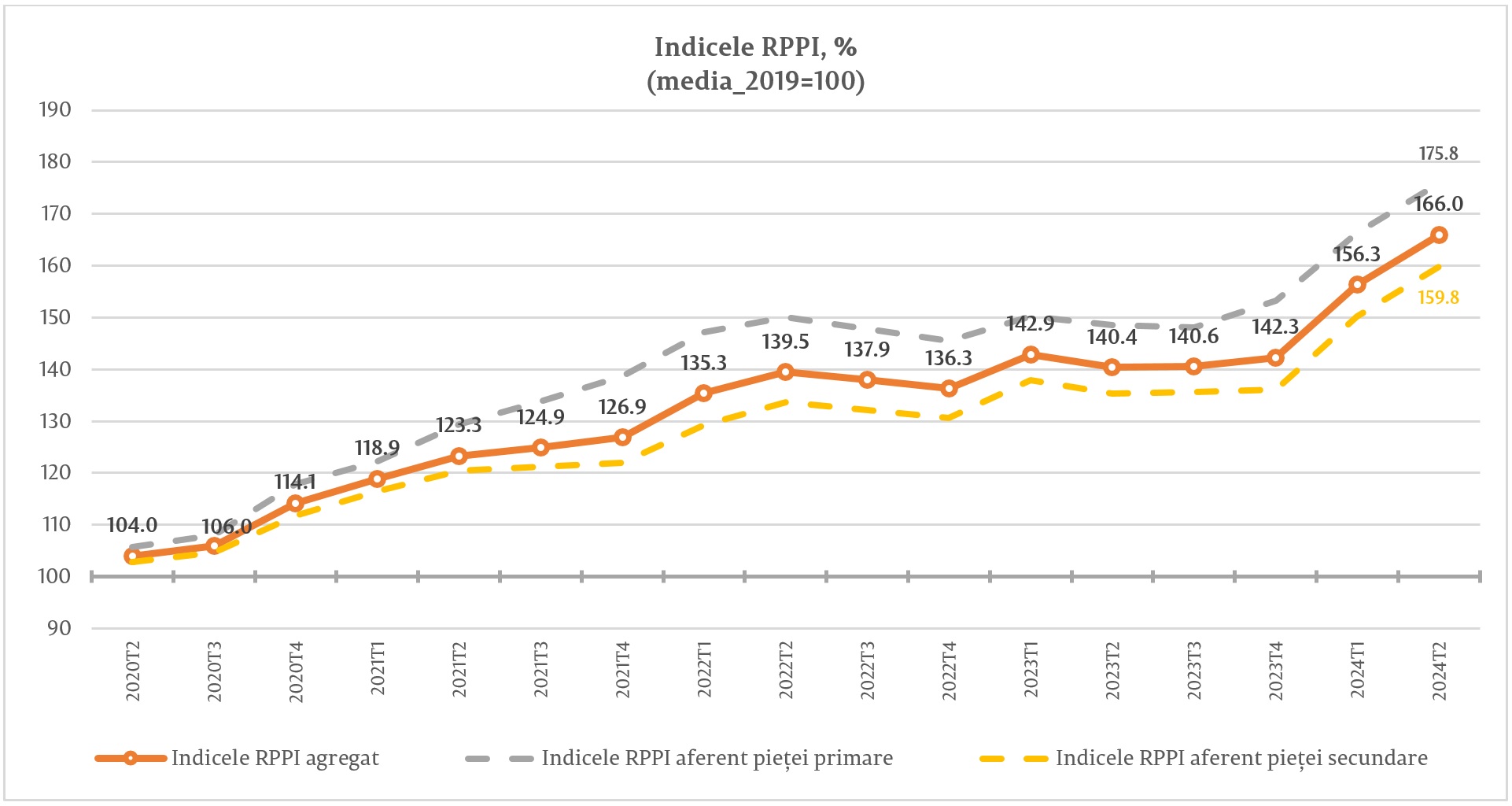 Pe piața primară, adică a tranzacțiilor cu locuințe noi, indicele prețurilor imobile rezidențiale a crescut cu tocmai 75,8 la sută față de 2018 și cu 5,8 la sută față de primul trimestru al acestui an. Comparativ cu aprilie-iunie 2023, creșterea a fost cu 18,3 la sută.