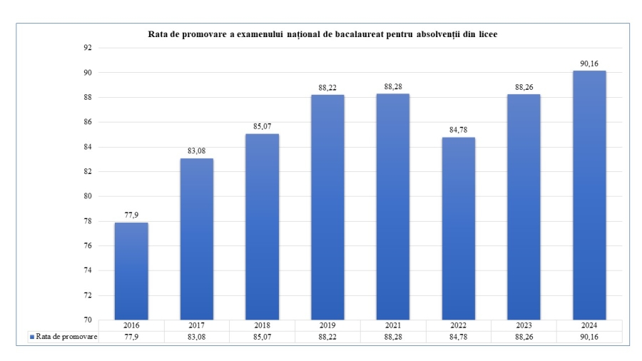 După examinarea contestațiilor, rata de promovare a absolvenților din licee a crescut cu 0,33 puncte procentuale și ajunge la 90,16 la sută, comparativ cu 88,26 la sută, de la aceeași etapă, în cadrul sesiunii din 2023. Rata de promovare pentru absolvenții din colegii și centrele de excelență este de 47,91 la sută, comparativ cu 45,59 la sută de la aceeași etapă în sesiunea din 2023.
