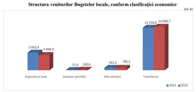 Veniturile bugetelor locale au ajuns, în nouă luni ale acestui an, la 20 de miliarde 261,6 milioane de lei. Față de aceeași perioadă a anului trecut, acestea au crescut cu doar 1,7 la sută sau cu mai puțin de 331 de milioane de lei. Din suma totală, veniturile proprii ale bugetelor locale au fost de 6,5 miliarde de lei. Asta înseamnă o creștere cu 660 de milioane de lei sau cu 11,3 mai mult față de ianuarie-septembrie 2023.