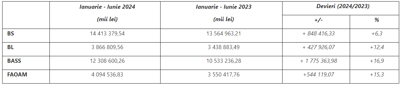 În fondurile asigurărilor obligatorii de asistență medicală au fost colectate aproape 4,1 miliarde de lei, ceea ce semnifică o creștere cu 544,1 milioane lei sau cu 15,3 la sută față de primul semestru al anului 2023.