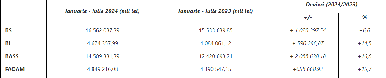 La bugetul asigurărilor sociale de stat au fost virate 14,5 miliarde lei, în creștere cu aproape 2,1 miliarde de sau cu 16,8 la sută față de șapte luni ale anului 2023.